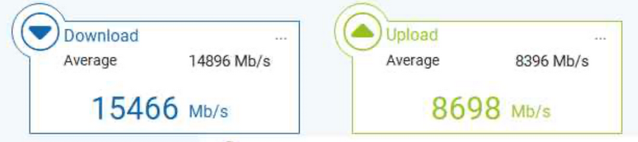 En réalité, je ne peux pas dépasser les 8 Gbps en mono-session. Cependant, comme les logiciels de speedtest utilisent plusieurs sessions simultanées lors des tests, le trafic est réparti sur mes deux liens. Cela permet d’atteindre un débit théorique pouvant aller jusqu’à 16 Gbps en téléchargement et 9 Gbps en envoi.