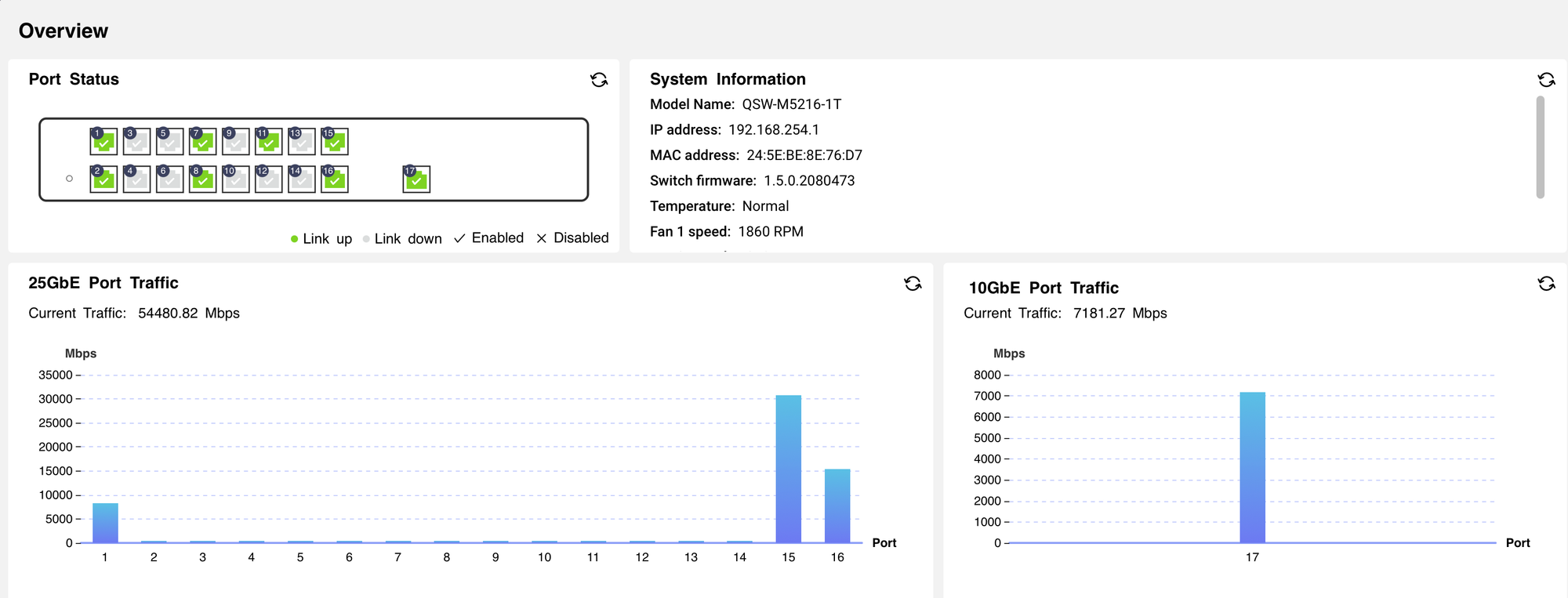 QNAP QSW-M5216-1T affiche la charge réseau :